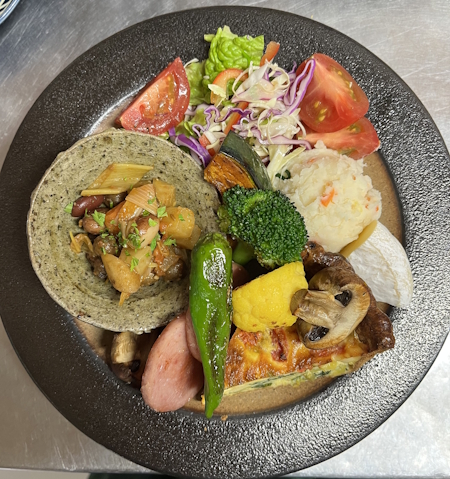 ↑ワンプレートに季節の野菜やお料理が盛り付けられて、きっときれいですよ。