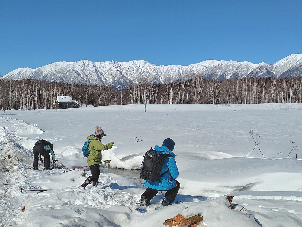 東大雪の山並みを眺めたり、沢沿いのフロストフラワーを(出来てれば)観察して遊びます。