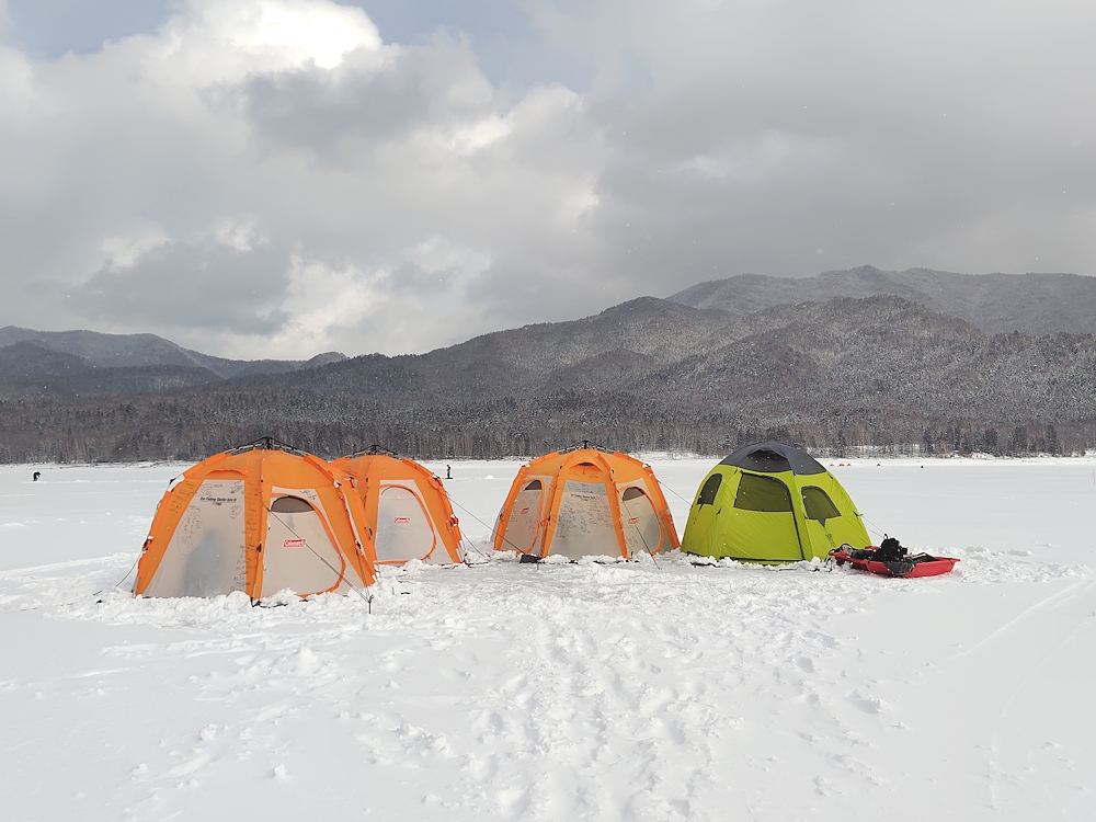 テントが足りなくって、ガイドセンターさんから一張りお借りして、4張りのテントで釣りました。