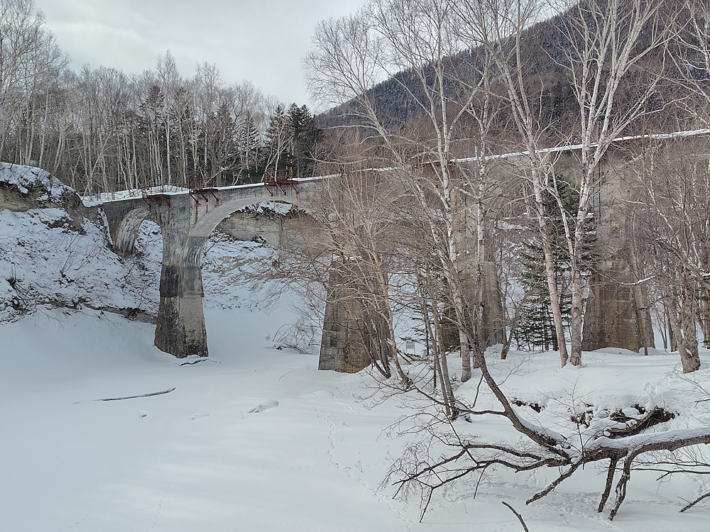 今日は下を流れる川も凍っていたので、橋のそばまで行って川に張った氷を見たり橋を見上げたりして戻りました。
