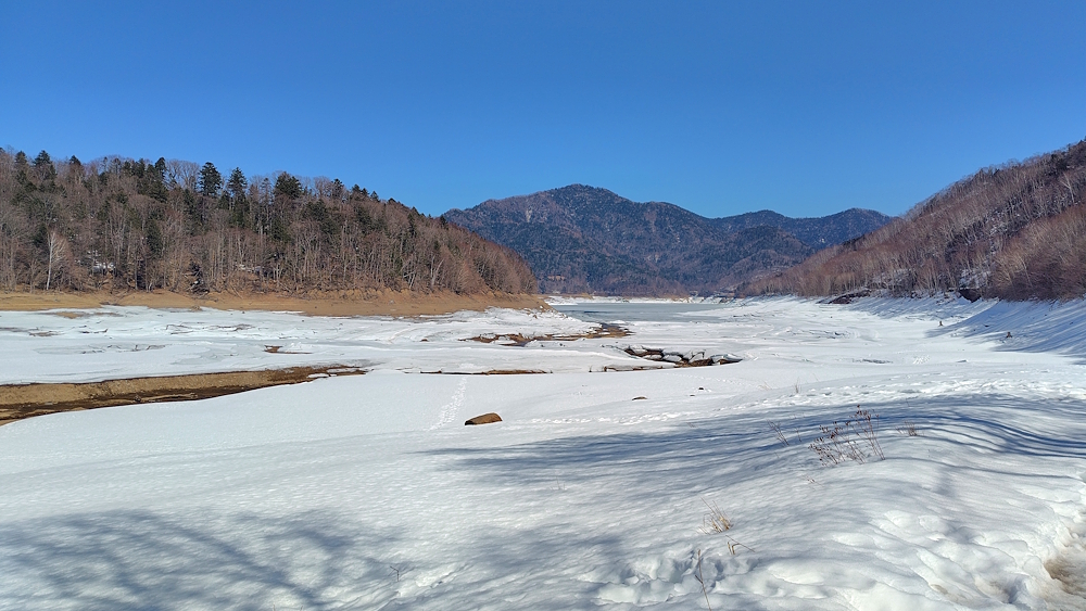 糠平湖畔園地に行ってみたら、湖の水位がだいぶ下がっているのが分かりました。